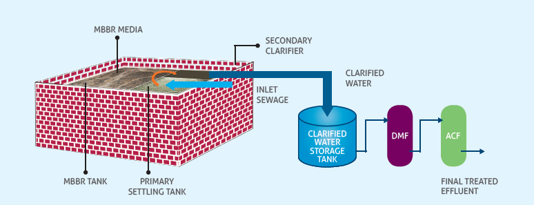 Moving Bed Biofilm Reactor(MBBR) technology is an attached growth aerobic process which is based in biofilm principle. Here the bacteria grow on plastic media carriers which are kept in suspension and in continuous movement with the help of aeration or mixing.